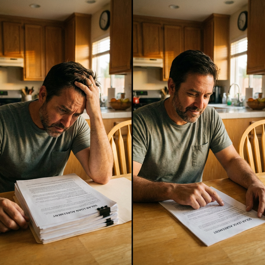 During the sales process, many California homeowners — particularly in the Inland Empire, Central Valley, and suburban Los Angeles markets — weren't given a clear explanation of which type of financing they were agreeing to. Some were told they were "just leasing" when they'd actually signed a solar loan agreement. Others were handed a financing agreement through a third-party lender like Mosaic, GoodLeap, or Sunlight Financial and didn't realize the solar company and the lender are entirely separate entities.