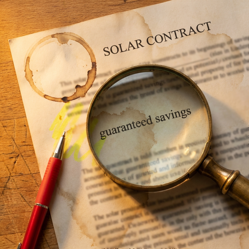Then year one comes in at 8,400 kWh. You file a claim. The fine print kicks in: the guarantee only applies after panel degradation, weather adjustments, shading allowances, and a dozen other carve-outs. The "guarantee" is meaningless.